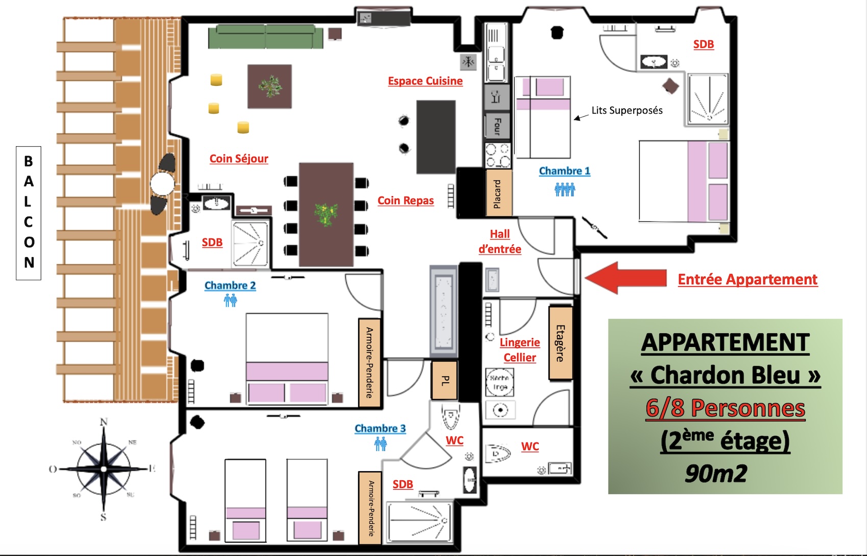 Spacious and bright 90m2 apartment for 6/8 people located in a house on the village square, between the tourism office and the bakery across from the grocery store.